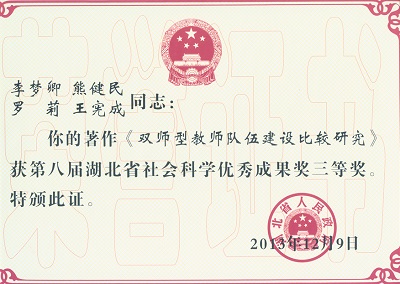 2. 第八届湖北省社会科学优秀成果奖(获奖著作:《双师型教师队伍建设比较研究》)